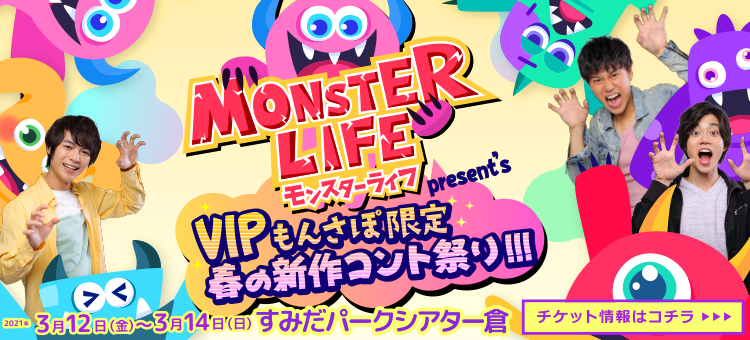 「MONSTER LIFE present’s VIPもんさぽ限定 春の新作コント祭り!!!」に寺山武志、荒木ロンペー、下山優一が出演します!