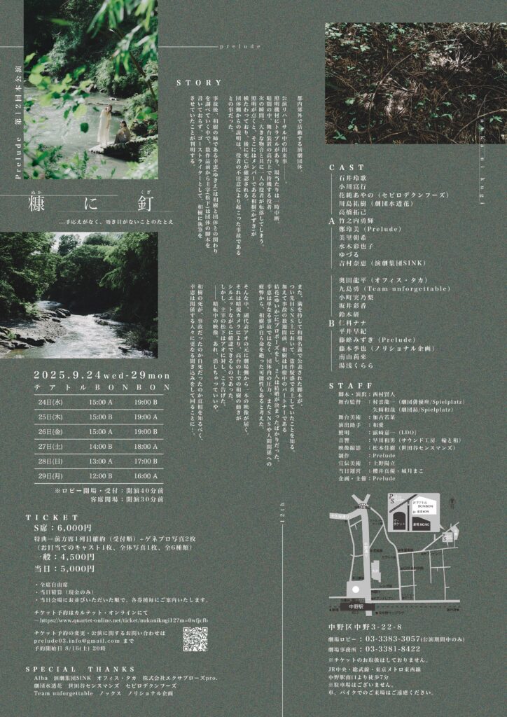 「Prelude第12回本公演『糠に釘』」に藤峰みずきが出演します!